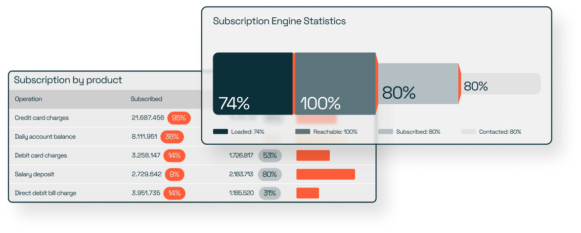 The Subscription Engine is a technology designed specifically for banking that gives customers the autonomy to manage their financial alerts. It allows notifications to be personalized by channel, amount, or transaction type, transforming generic messages into relevant communications. This way, the bank ensures the delivery of critical alerts while improving the digital experience and customer satisfaction.